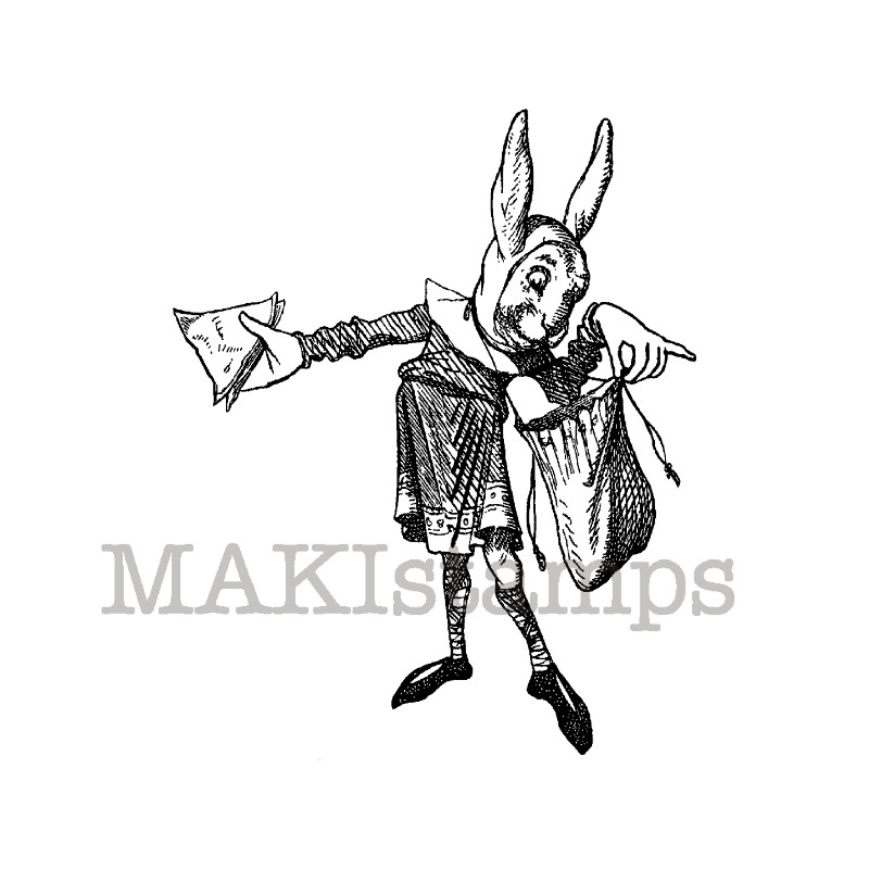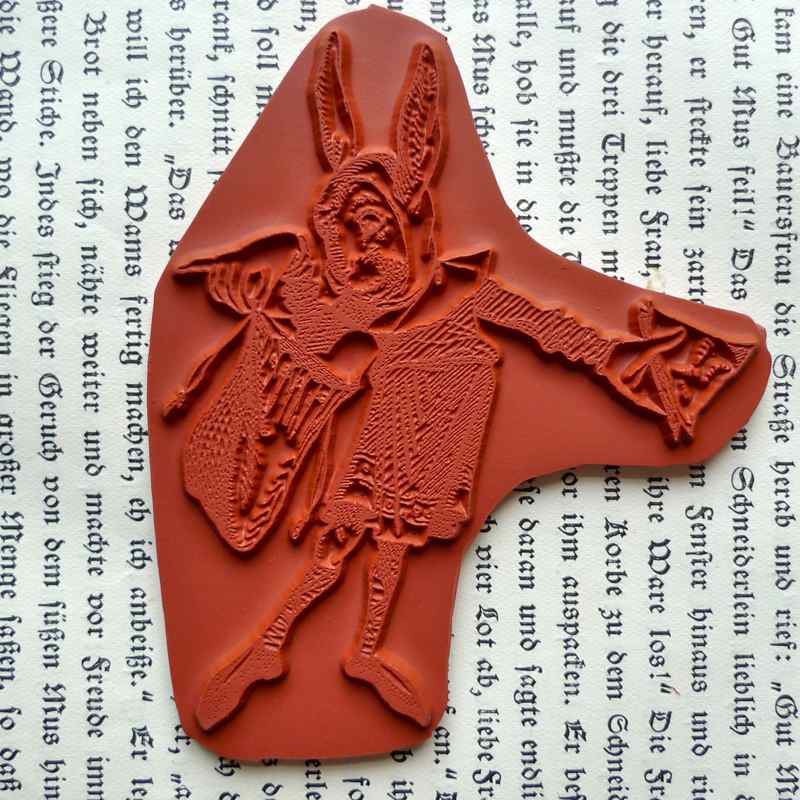 Stempelgummi Hasenstempel Alice “ Hasenkurier “ aus 100% rotem vulkanisiertem Gummi, Maße: ca. 7,0 x 8,4 cm.